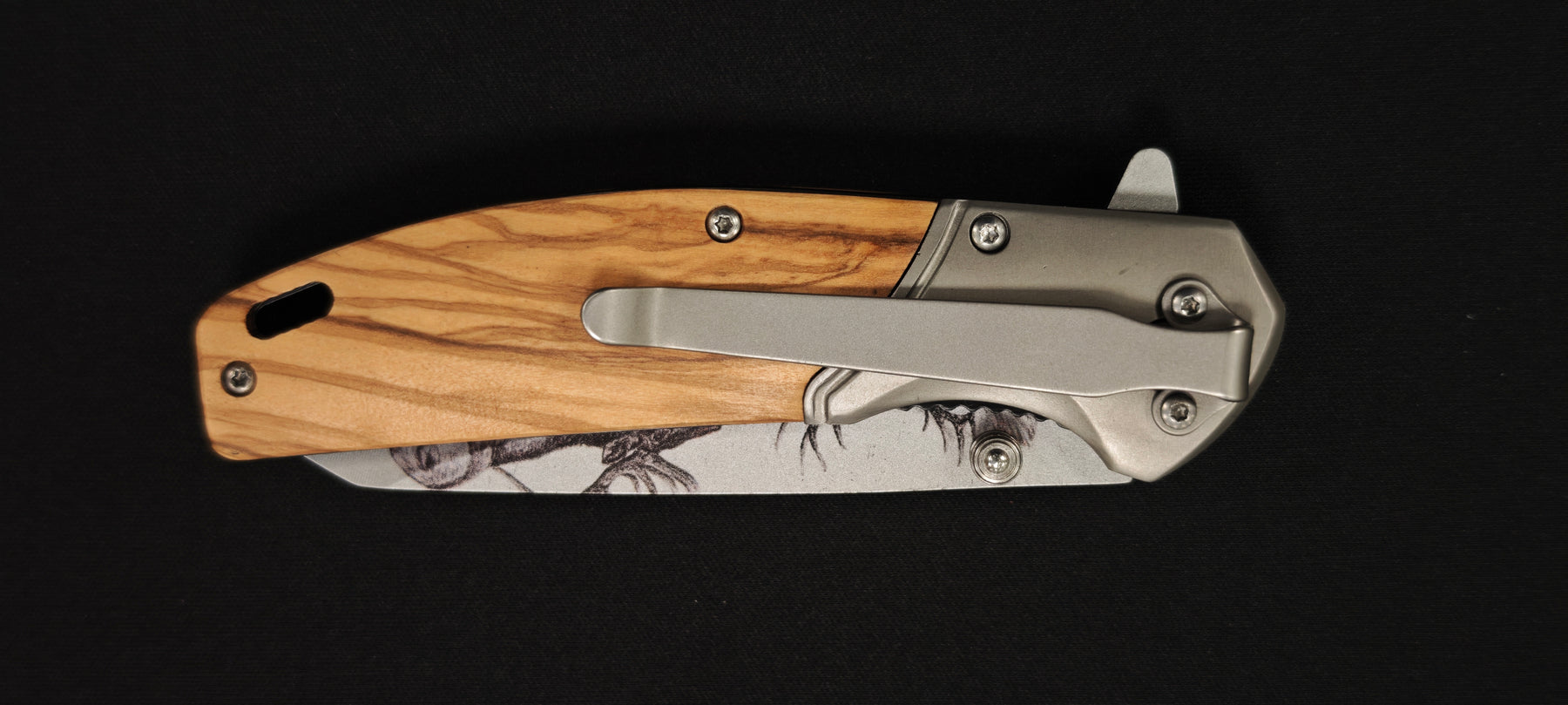 Couteau pliant Herbertz CJH - Manche Olive Wood – Design Cerf 3D