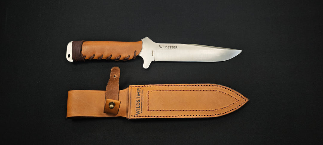 Wildsteer TX‑H – Couteau à lame fixe - Manche Cuir Gold & Étui Cuir