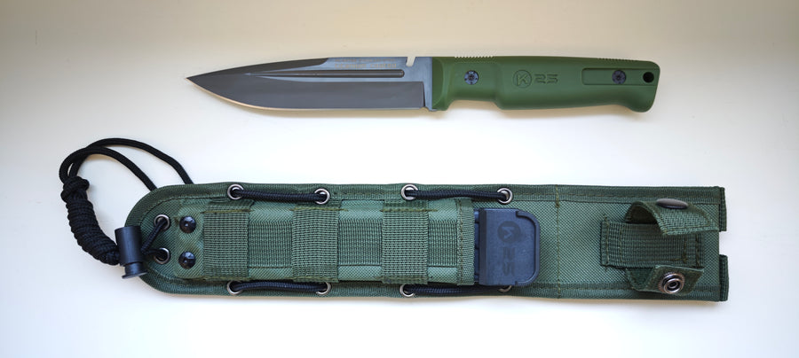 K25 32756 Couteau tactique à lame fixe manche en caoutchouc