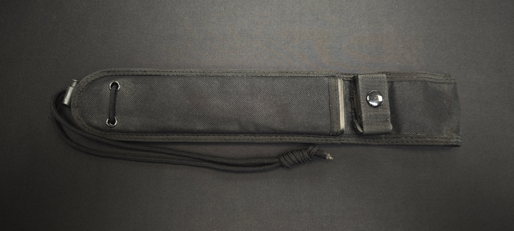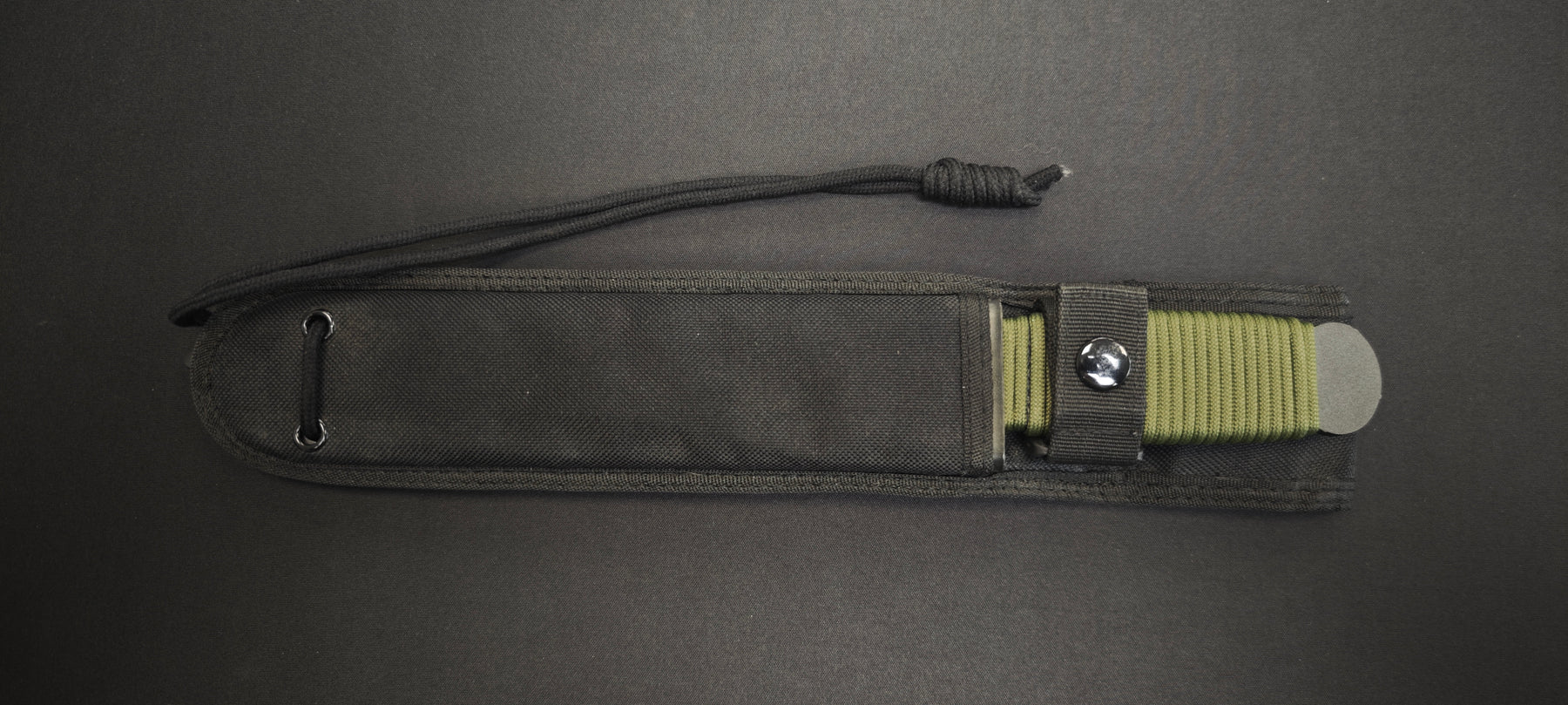 Le manche est entouré d’un cordage type paracorde qui améliore la prise en main et peut être retiré si nécessaire. Le couteau est livré avec un étui qui n'est PAS celui d'origine. Il s'agit d'un étui de la marque Ontario. Il supporte parfaitement le Cold Steel et peut être attaché à la ceinture ainsi que sur un sac.