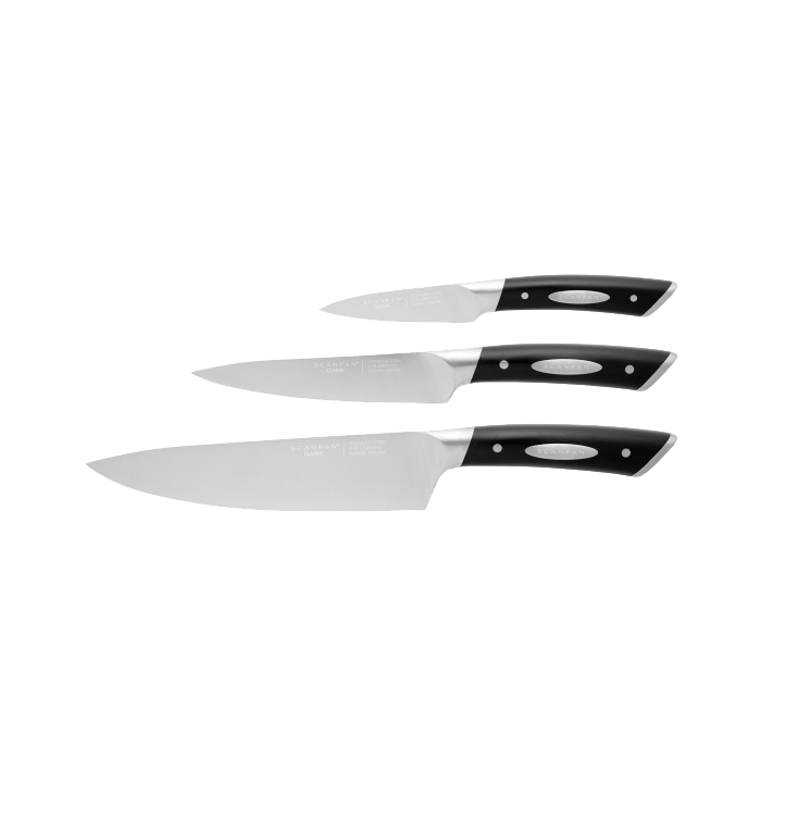 Le produit 92001800 de Scanpan est un ensemble de 3 couteaux de cuisine, de la série Classic