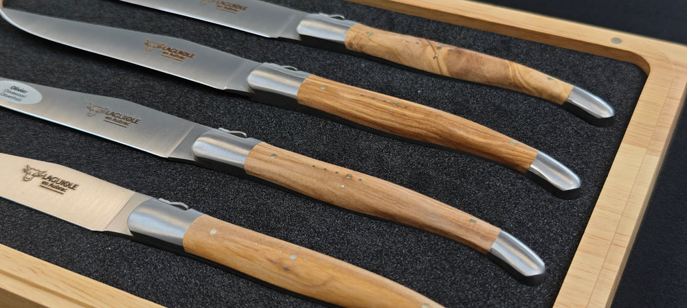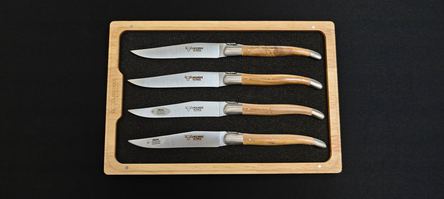 Laguiole en Aubrac 42C12OLIHL Coffret 4 couteaux à steak en bois d'olivier