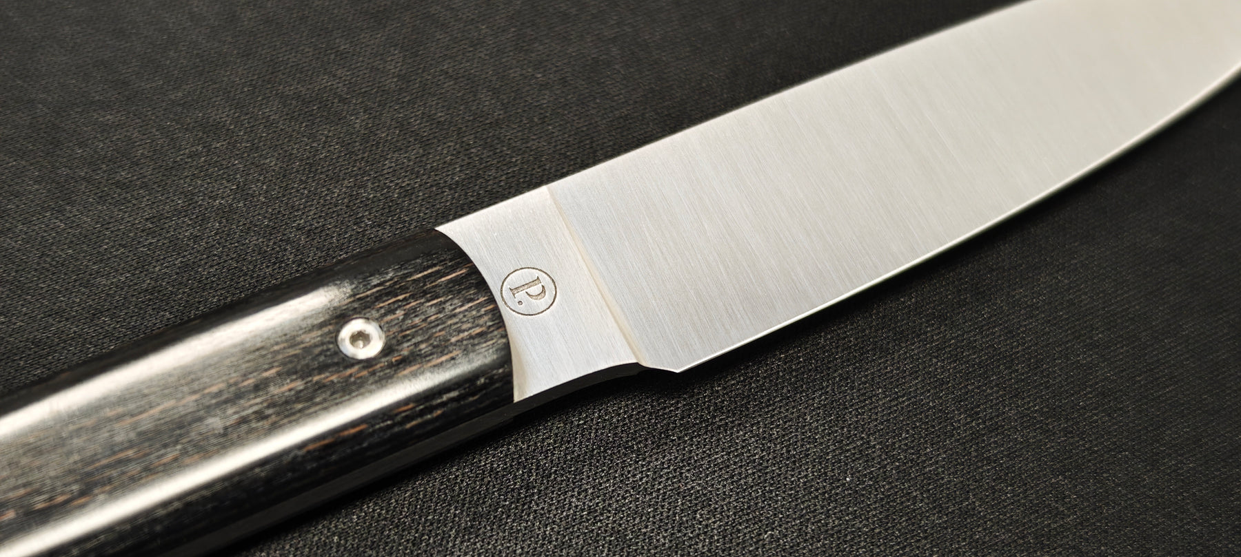 Fabriqué artisanalement dans l’atelier Perceval à Thiers, capitale historique de la coutellerie française, ce couteau se distingue par sa qualité de fabrication et son design réfléchi. Chaque pièce est ajustée, façonnée, polie et affûtée à la main, ce qui confère à chaque couteau une identité unique.