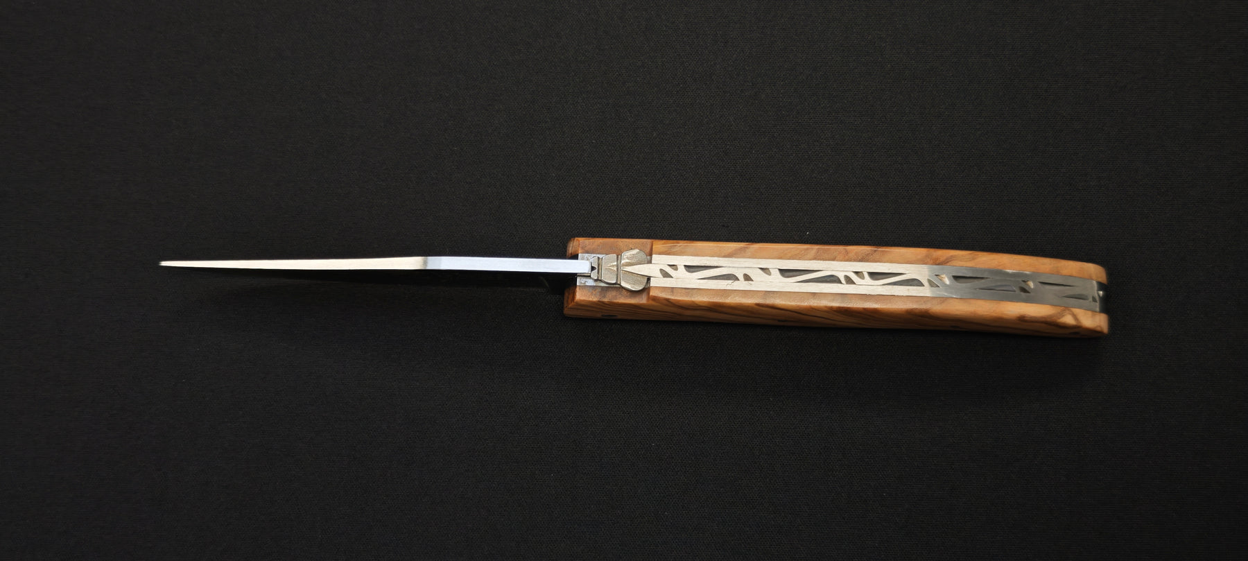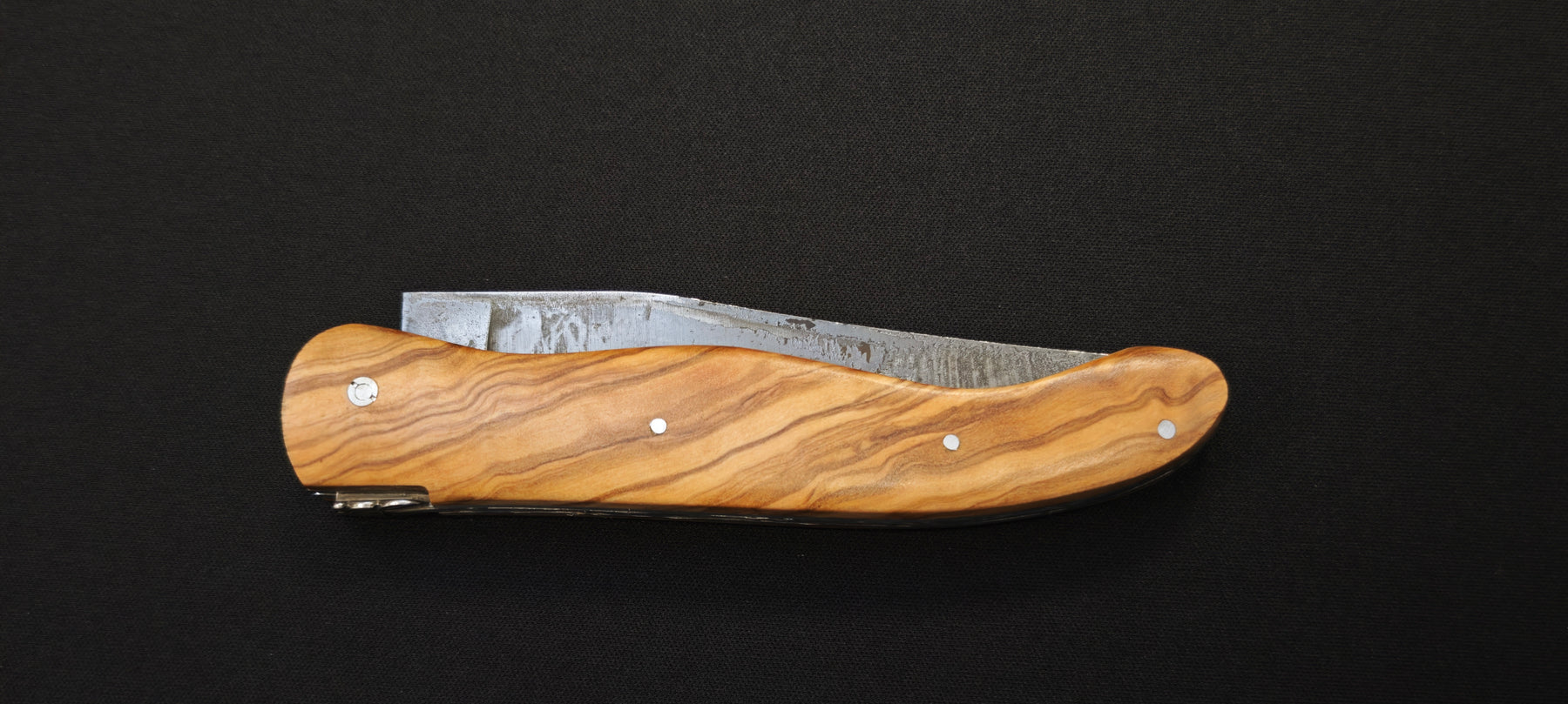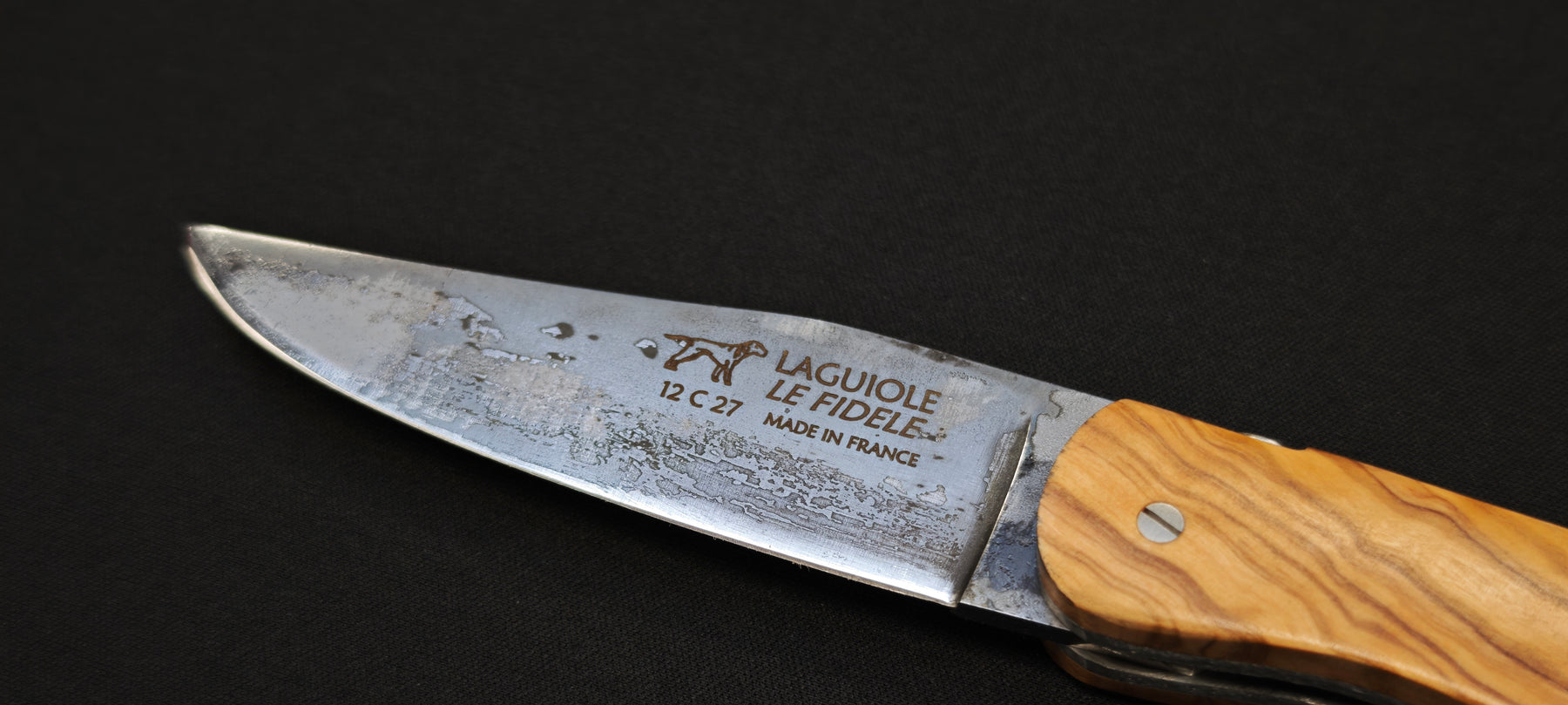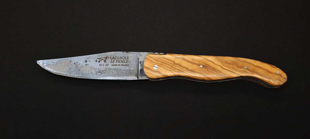 El cuchillo de caza Fidèle Laguiole mango integral de madera de olivo + hoja templada en bruto