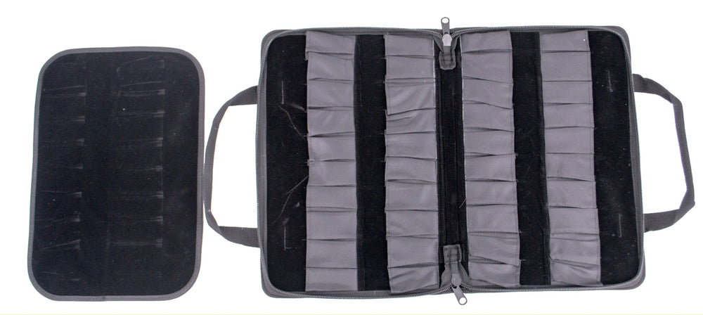 Pouvant accueillir 40 couteaux, doublé de velours noir, incluant un passe-partout également doublé de velours noir.