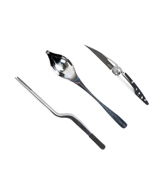Décorez, garnissez et servez avec le couteau de poche, la cuillère à garniture et la pince à épiler Chef's Mate.