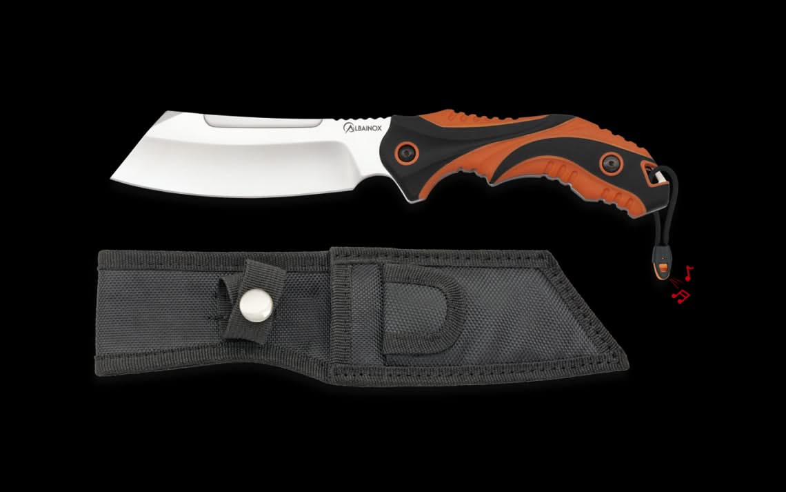 Le couteau est livré avec un étui en nylon, pratique pour le transport et le rangement, et équipé d’un sifflet intégré pour plus de sécurité lors des sorties en nature. Ce modèle convient parfaitement aux amateurs de camping, randonnée, pêche ou toute activité outdoor nécessitant un couteau fiable et fonctionnel.