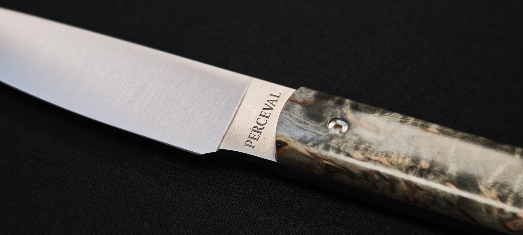 Perceval - Couteau d'office 10cm - manche loupe de bouleau noir stabilisé | 947